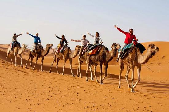 On the fifth day of our Casablanca Morocco Desert Tours , we will have our local breakfast in the Hotel to start leaving towards Todra Valley the marvellous landscape with high vertiginous limestone cliffs, a real paradise for hikers and climbers. After exploring the beautiful area, we will have lunch in a charming little restaurant next to the river while enjoying the astonishing view. We will pass on our way by Erfoud and Rissani, the captivating little villages to finally arrive to Merzouga the golden heart of the Moroccan Sahara, to have a cup of tea with the Sahara locals and take our camels to our desert camp where will gather around the fire to listen to amusing drums music and enjoy the perfect moment .