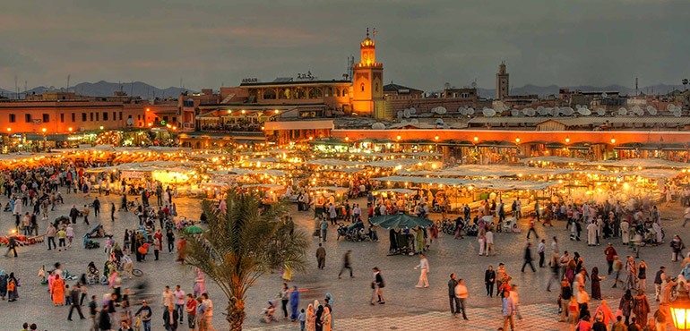 On the second adventure of our Marrakech Imperial Cities Tours, Morocco excursions team will introduce you to every beautiful inch of the marvellous city, starting with the Koutoubia mosque and its stunning minaret, which is a great beauty, the largest, and, without doubt, the most beautiful mosque in all of Marrakesh, we will also be visiting the remaining of the Saadi tombs, in addition to the fabulous Bahia Palace and the private museum of Marrakech. We will have our Tanjia " tanjia is a unique, meat-heavy dish made only in this city. in traditional restaurant tasting the perfect Moroccan explosion of strong spices, then we will proceed with our tour towards its souks and bazaars and old Medina and lastly the wide square of Jamma El Fna where the locals are impressively showing their own cultures and traditions.